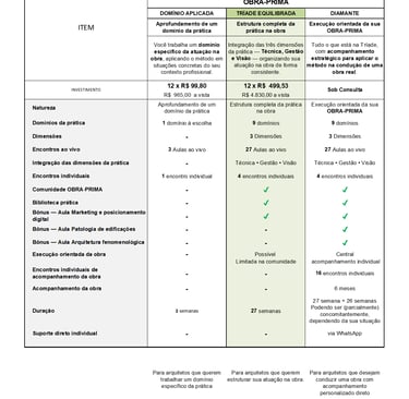 Por isso, a OBRA-PRIMA oferece três formas de desenvolver sua prática profissional.